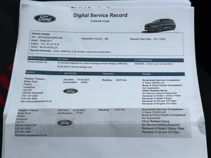 0L petrol engine, meeting Euro 6 emissions standards. Inside, you'll find a well equipped cabin featuring manual air conditioning for your comfort, and the SYNC 3 system with navigation, which seamlessly integrates with both Android Auto and Apple CarPlay for all your connectivity needs. For added convenience and safety, it includes rear parking distance sensors and striking LED headlights with integrated daytime running lights and fog lights. The Ford Fiesta ST Line offers a dynamic driving experience, highlighted by its brisk 0-62mph acceleration in just 10.8 seconds. This performance, combined with its modern technology and single owner provenance, positions this particular Fiesta as an excellent choice. The inclusion of features like SYNC 3 with navigation and LED lighting demonstrates a higher specification, setting it apart from other vehicles in its class and ensuring a more enjoyable and connected journey.