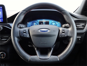 - Flat Bottom Steering Wheel in Sensico with Red Stitching